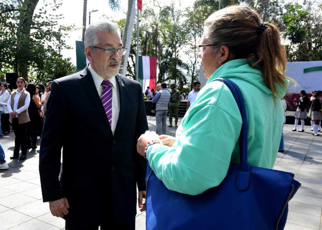 Xalapa, Ver.- El presidente municipal Alberto Islas Reyes asistió a la ceremonia conmemorativa por el Día de la Bandera, acto que encabezó en el parque Benito Juárez la gobernadora de Veracruz, Rocío Nahle García.
