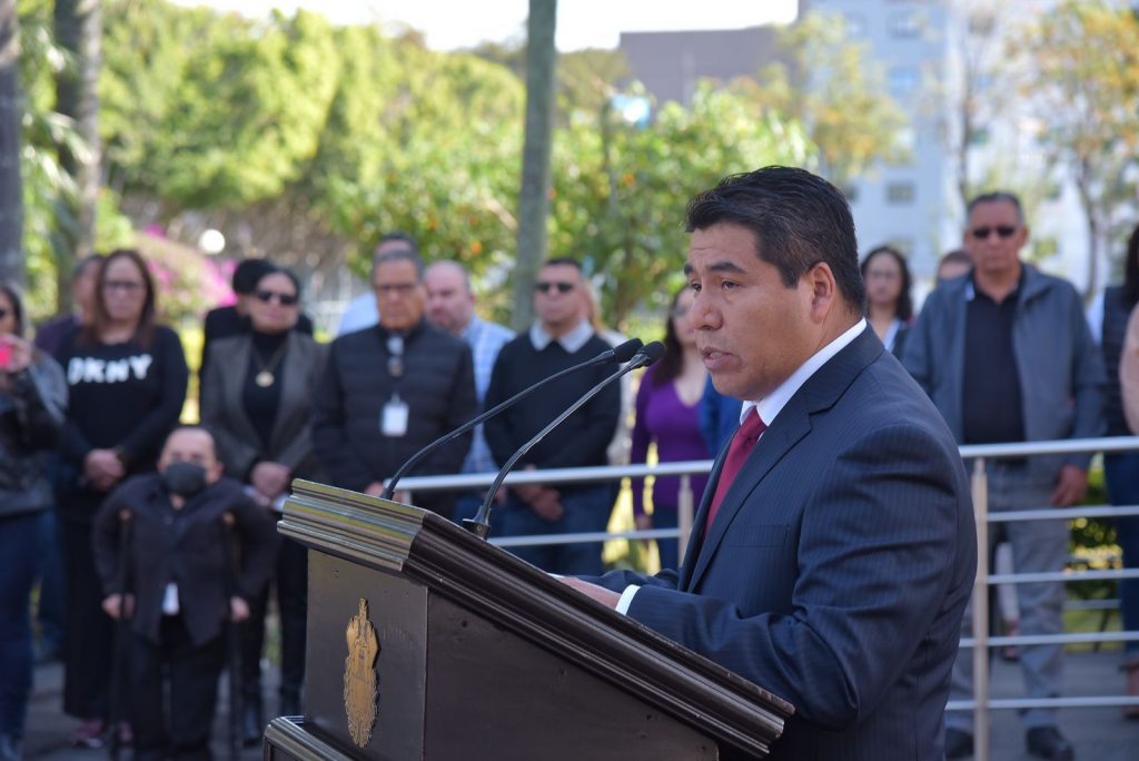 Tras los honores respectivos, el izamiento del lábaro patrio y la entonación del Himno Nacional Mexicano por parte de los presentes, el secretario de Servicios Administrativos y Financieros de este Congreso, Alfredo Alberto Martínez Gómez, hizo uso de la palabra.