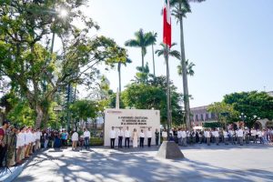 El izamiento del Lábaro Patrio quedó a cargo de la primera autoridad, Juan Martínez Flores, posteriormente, el alumno Santiago Di María Zamora Castellanos se encargó del juramento a la Bandera.