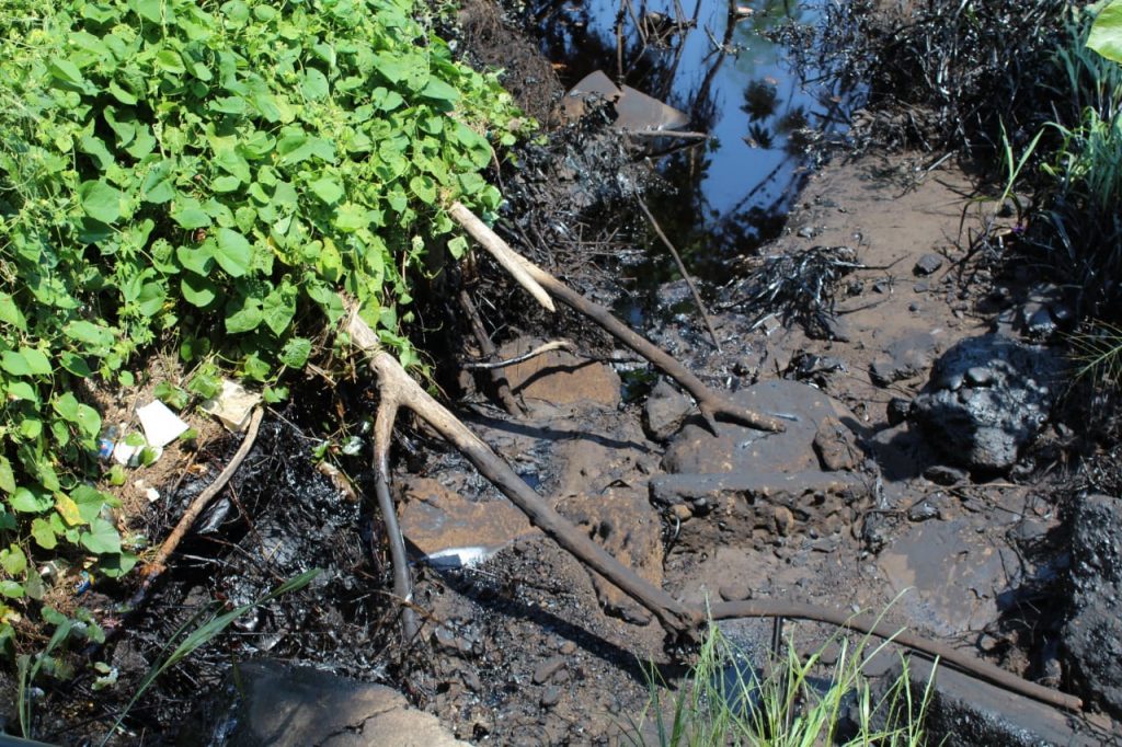 Los desechos de material con características de petróleo crudo se emiten de los drenajes pluviales de las instalaciones de Pemex en la calle Morelos y se escurren en caída natural por las calles de Parejas, Monja Alférez y llega al bulevar Benito Juárez donde baja a la ribera del río y se confina en un cárcamo natural que al alcanzar su límite se desborda para llegar al río.