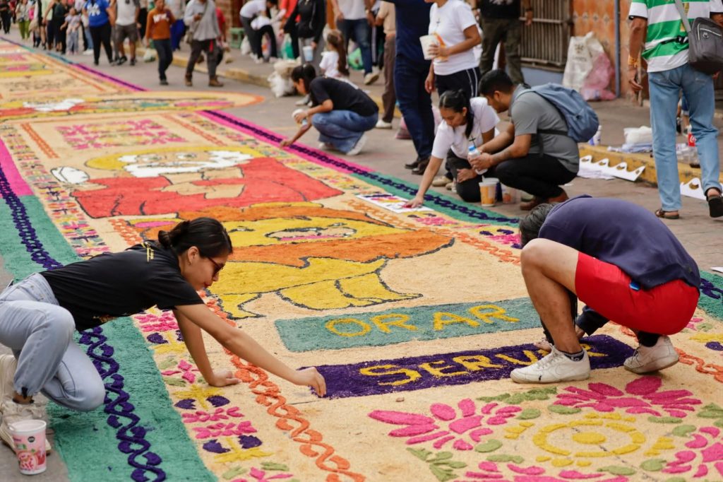 El Presidente Municipal Raymundo Andrade Rivera efectuó un recorrido para admirar los tapetes y fue acompañado de regidoras; a su paso saludó y conviviendo con las y los ciudadanos que visitaron y participaron en la elaboración de estas obras.