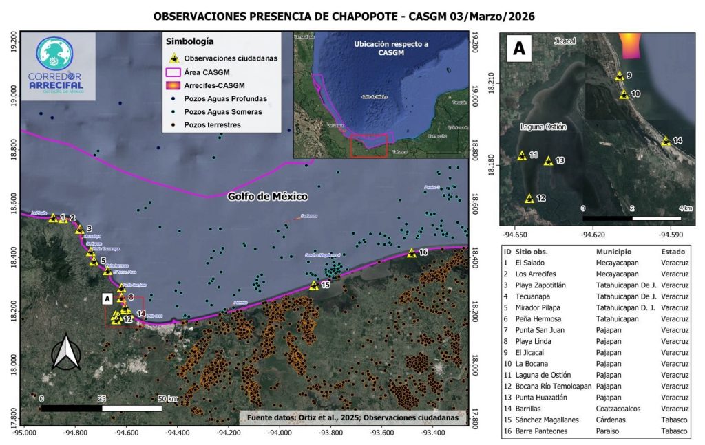 El impacto visual es devastador. En la comunidad de Los Arrecifes se han localizado tortugas marinas cubiertas de crudo, mientras que en Coatzacoalcos se reportó el hallazgo de un manatí muerto. La contaminación amenaza directamente al Corredor Arrecifal del Suroeste del Golfo de México, un sistema de 17 arrecifes que actúa como barrera natural contra huracanes y motor del ecoturismo.