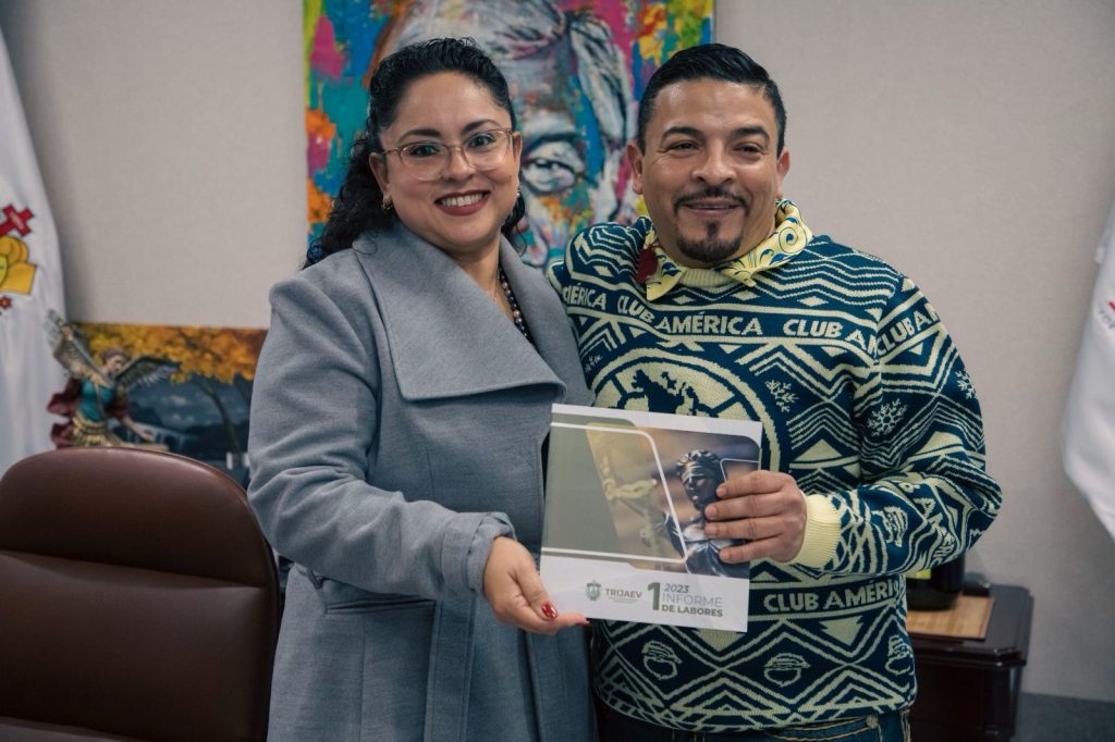 Xalapa, Ver., 12 de diciembre de 2023.- En cumplimiento de ley y de transparencia, la magistrada presidenta del Tribunal de Justicia Administrativa del Estado de Veracruz (TRIJAEV), Leticia Aguilar Jiménez, entregó el Informe de Labores 2023, al gobernador Cuitláhuac García Jiménez, a la presidenta de la Mesa Directiva de la LXVI Legislatura, Adriana Esther Martínez Sánchez y al titular de la Junta de Coordinación Política, Juan Javier Gómez Cazarín.