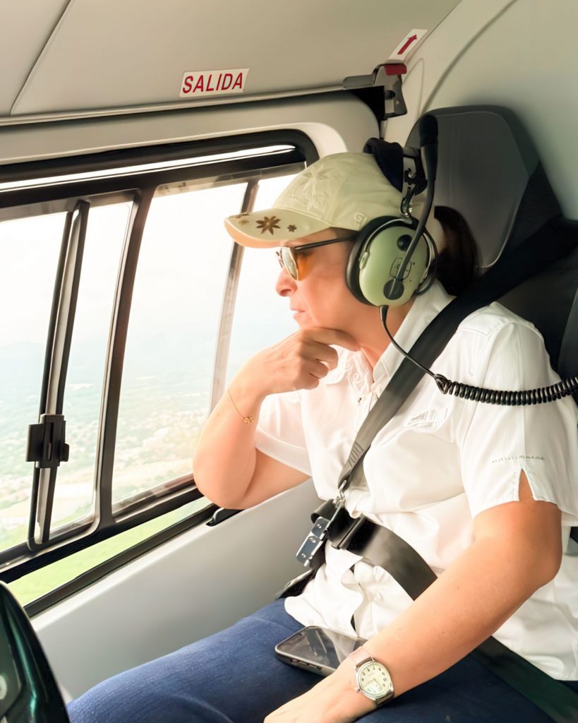 Xalapa, Ver., jueves 09 de octubre de 2025.- La gobernadora Rocío Nahle García realizó un sobrevuelo por las zonas afectadas por las intensas lluvias en la región norte del estado, para supervisar los trabajos de atención a la población y verificar el estado de ríos y vialidades.