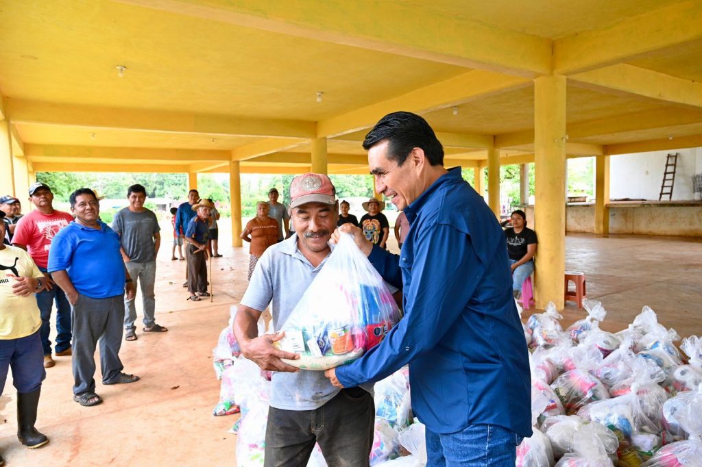 • En representación de la gobernadora Rocío Nahle García, la diputada Naomi Edith Gómez y el diputado Esteban Bautista encabezan la distribución de dos mil despensas en Pajapan, Tatahuicapan y Mecayapan.