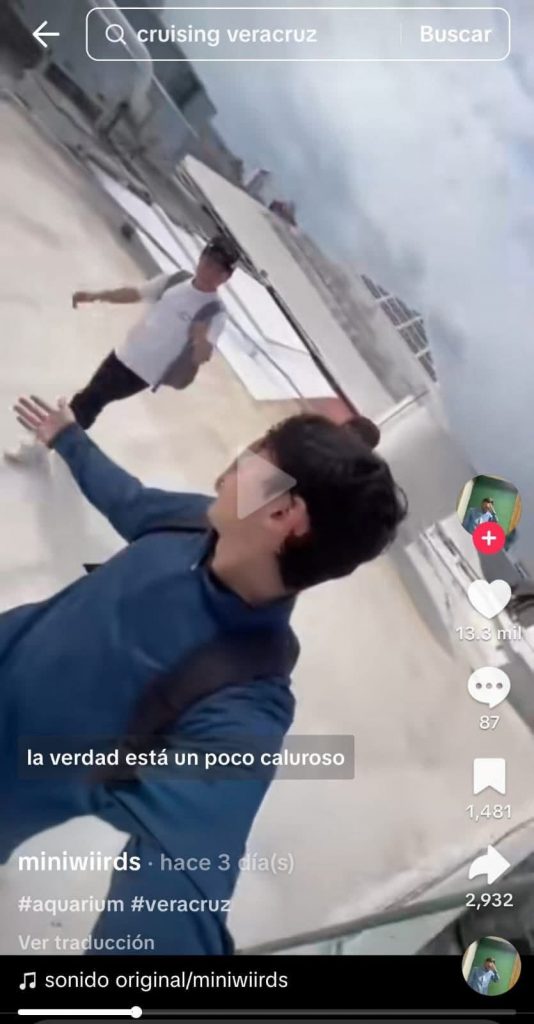 Tres adolescentes, cuyas edades oscilan entre los 15 y 17 años, subieron un video a la red Tik Tok en la cuenta miniwiirds, titulado “Cruising en Veracruz” y aparecen caminando en la azotea de Plaza Acuario.