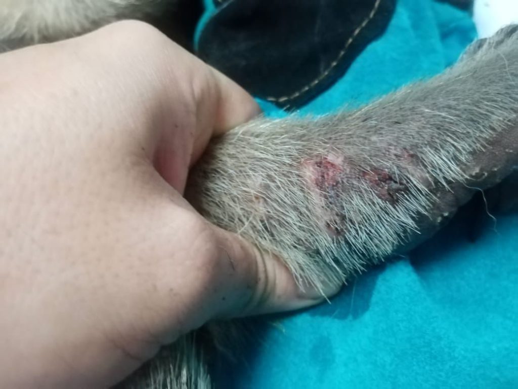 Los animales presentaban algunas heridas en sus patas y en las plantas de sus patas, debido al incendio, aparentemente de una quema agrícola que se salió de control y afectó su hábitat natural.