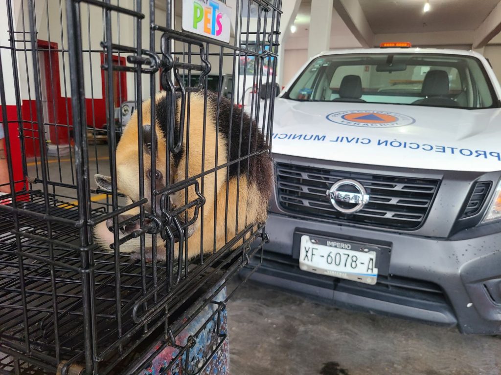 Veracruz, Ver.- La mañana de este martes 7 de octubre elementos del Heroico Cuerpo de Bomberos de Veracruz capturó y dio resguardo a un oso hormiguero que se encontraba al interior de una vivienda.