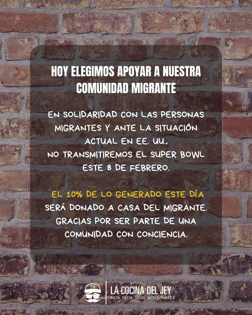 En sus redes sociales publicó el siguiente mensaje: “Hoy elegimos apoyar a nuestra comunidad migrante. En solidaridad con las personas migrantes y ante la situación actual en Estados Unidos, no transmitiremos el Super Bowl este 8 de febrero”.