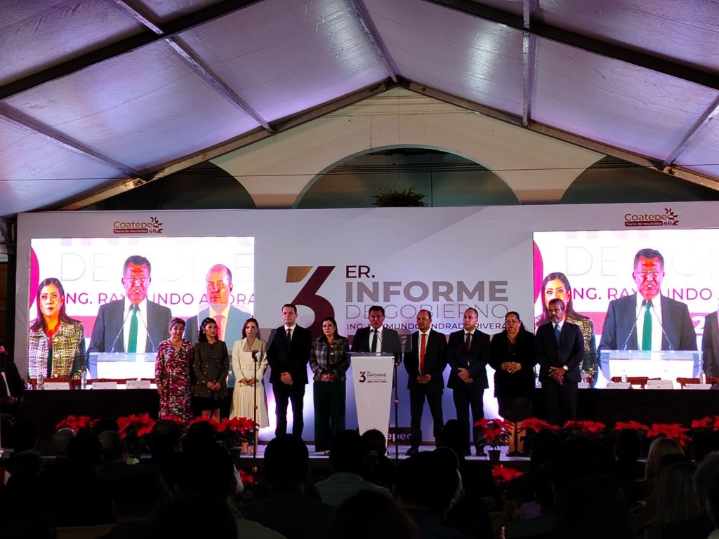 Coatepec, Ver., 13 de diciembre de 2023.- Coatepec es tierra de resultados y como tal, queremos abonar a la construcción del segundo piso de la Cuarta Transformación bajo el principio de mantener la austeridad y la disciplina financiera para entregar las mejores cuentas a la ciudadanía, afirmó el ingeniero Raymundo Andrade Rivera al rendir su Tercer Informe de Gobierno.