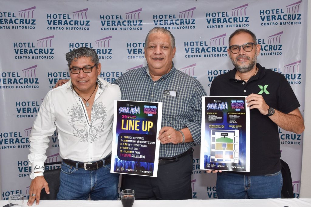 *Veracruz, Veracruz. Viernes 26 de diciembre 2025.-* En una segunda conferencia de prensa en este municipio, los empresarios organizadores del The Final Beat Veracruz 2025 con el Dj internacional Steve Aoki, quedó confirmada su presencia en el WTC el lunes 29 de diciembre.